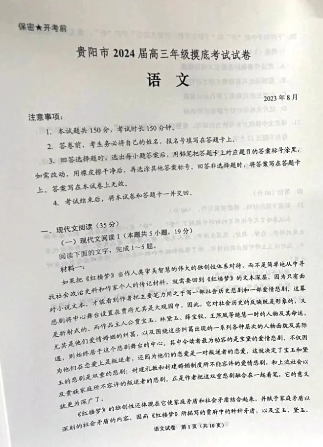 小编已经提前发布了毕节市/铜仁市/黔南州/贵阳市2024届高三年级摸底考试语文、数学、英语、物理、化学、生物、政治、历史、地理各科试题及答案解析!试卷解析及答案发布地址公告:试题资料答案汇总在QQ群:701681864,以下均为复习备考资及相关练习题,以供使用!