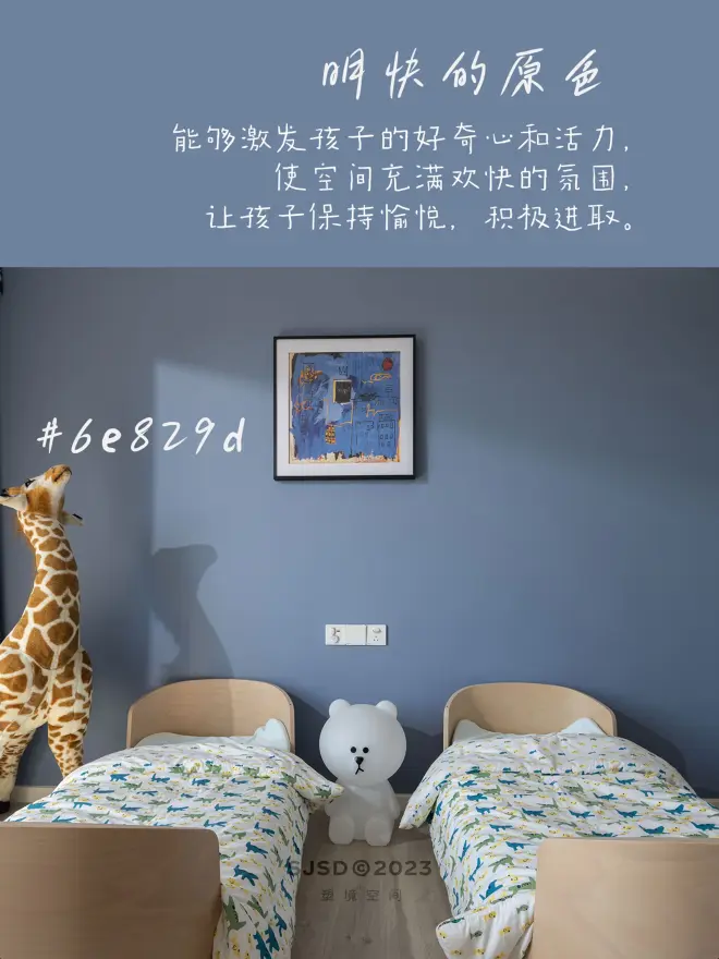 儿童房的配色方案中,明快的原色是最受欢迎的选择之一。鲜艳的红色、蓝色和黄色能够激发孩子的好奇心和活力!可以选择将墙壁涂成明亮的蓝色,创造出一个充满活力和欢快氛围的空间。这样的配色方式能够促进孩子的发展,并帮助他们保持积极进取的心态。让孩子的房间成为他们快乐成长的乐园!🌈