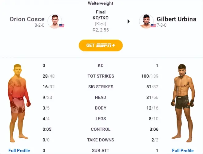 绰号“星系”的科斯,此战在站立、摔跤、柔术各环节均遭到完爆,首回合时肋骨就出现问题,使比赛失去悬念。更令人无法接受的点,连续两场超重,UFC累积1胜2负,步弟弟路易斯.科斯的后尘,收到官方解约开除通知。