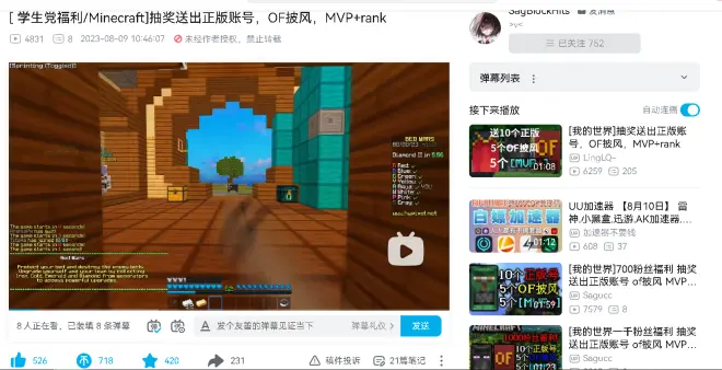 [ 学生党福利/Minecraft]抽奖送出正版账号,OF披风,MVP+rank的评论 (共