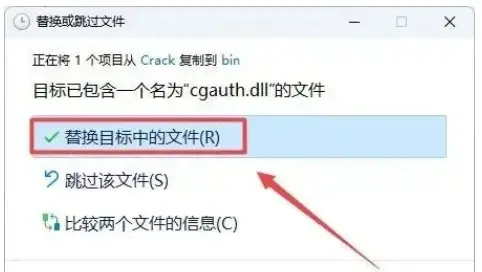 14.点击“替换目标中的文件“(若提示需要权限,点击继续)