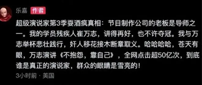 当年在《超级演说家》节目的录制现场,乐嘉之所以如此出离愤怒,是因为他的学员崔万志,明明表现很好,却一直被节目组排挤、无视。