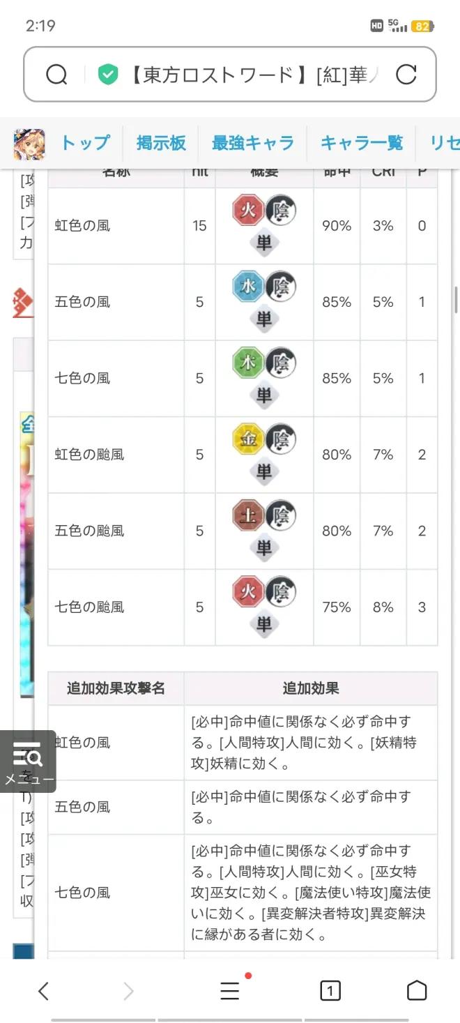 角色的1技能和能力可以让己方全体在短时间内拉满命中和速力buff,1技能cd只有2回合,队友可依靠自身buff配合红美铃延长持续时间,在敌方削减我方大量命中以及己方队友非常缺少命中buff的时候能起到很大帮助,但是由于终符特攻窄的问题很难在大多数副本中有出色的表现(除了这点外还有就是很多复灵塔对阴打手不太友好,例如大量降阴功提升阴防等情况)。单体符能够在给予对方降防的同时增加一定灵力为队友提供回盾效果,一般用于打输出,前提是特攻和属性对上,不过由于无补正和彩虹属性的原因打输出不算太理想。小符卡缺少➕自身buff的效果,预热得依靠符卡段落和绘卷。群体符破异常层数少段落靠后,不太实用,能够降低敌方少量的爆防,在敌人大量降己方爆伤的场合能起到一定作用。有有利增伤但是终符是双属性,能给己方提供少量阳防和阴功buff,终符硬质斩裂加成不高且词条数量少,作为a限来说合格了,在复灵塔实战方面自身属性和特攻如果能对得上可以一用。