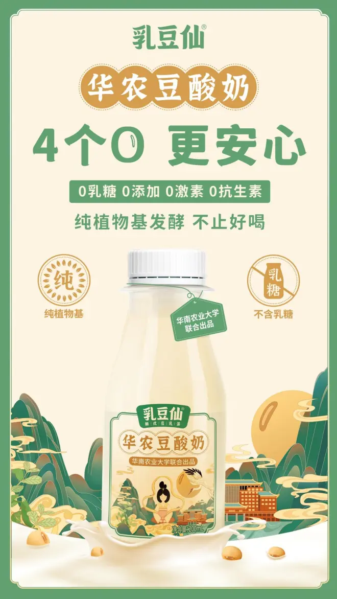 为打造一款全民都爱喝的优质植物酸奶,乳豆仙(广州)品牌管理有限公司携手华南农业大学食品学院专家团队,合力推出全新产品——“乳豆仙”豆酸奶。采用华农专利技术发酵的高品质纯植物基酸奶,原料只有纯豆浆粉、纯椰子粉、低GI的晶炼黑糖及华农专利菌种,不仅充分释放了植物营养,口感更丝滑香醇,而且真正做到了0乳糖,给予用户以味蕾享受的同时饮用起来也更加的健康,乳糖不耐受人群终于可以大饱口福。