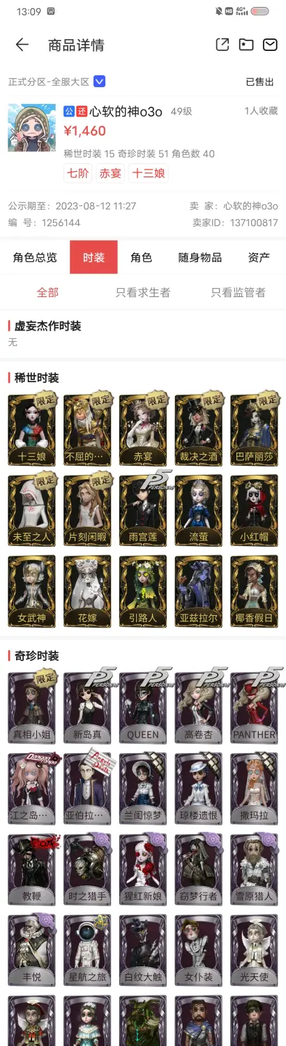 前面的是我新买的号,真的很爱赤宴与十三娘,好不容易在阁子上找到个和适的,还有古堡与牌子,真的很爱。 后面是我出掉的旧号,因为想买前面的号,就便宜出了,希望它能找个好人家吧