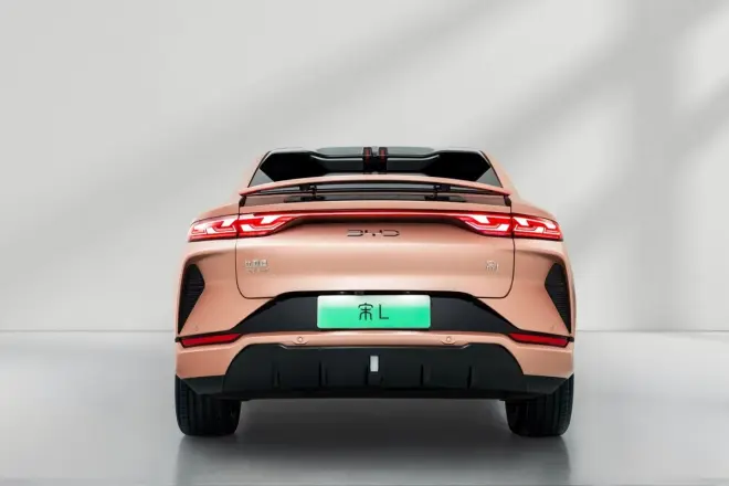 宋L首搭“前窄后宽轮胎、无框车门、电动尾翼”三项配置,迎合年轻用户对个性化造型的追求,实现美学与功能的完美统一。