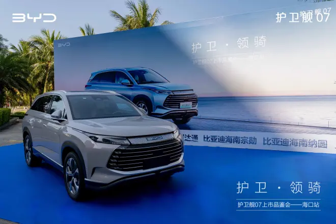 2023年2月18日,护卫舰07上市品鉴会海口站活动在海口西海岸假日酒店圆满收官。活动现场,邀请了各主流媒体平台老师与比亚迪新能源车主朋友齐聚现场,共同见证重磅车型“护卫.领航”护卫舰07闪耀登陆海口。