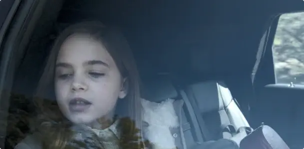 路上,小女孩看向车窗外数数: