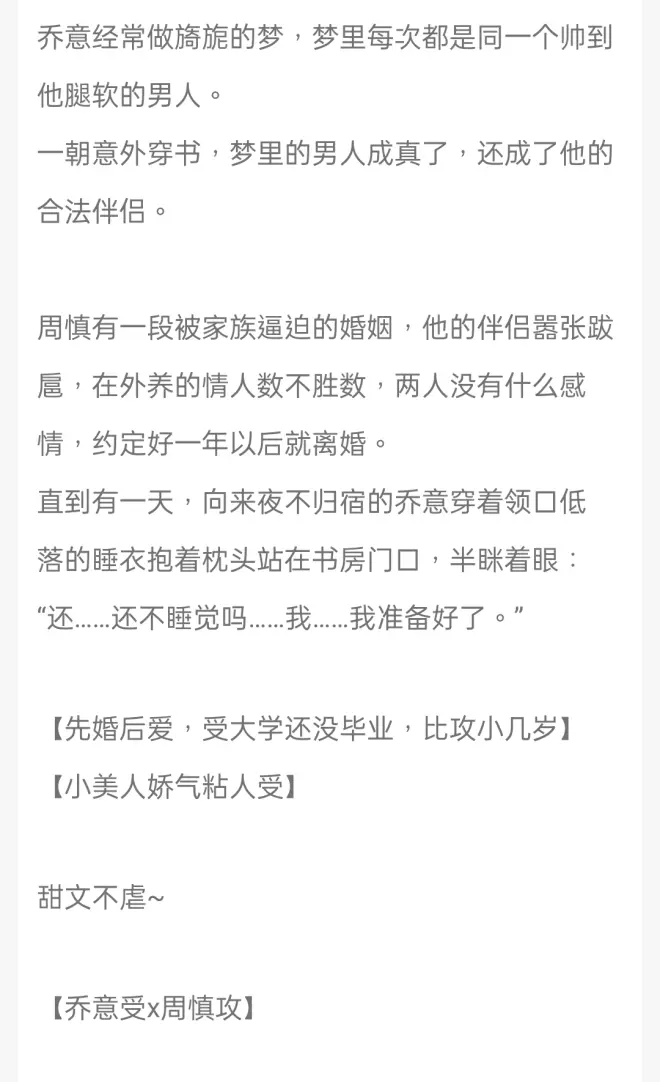 娇娇美人受,受是那种无意识撒娇的类型,老公张口就来。先婚后爱。
