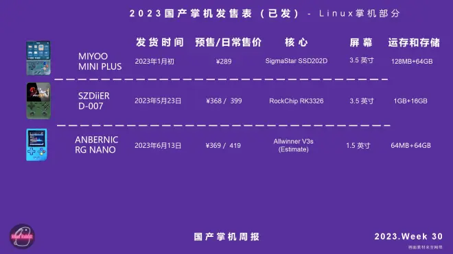 7、国产掌机发售表。