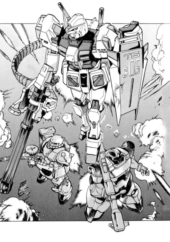 扎古和力克·大魔等友军机不落其后地跟随着他。无论哪一架都展现出让人感觉到是其驾驶员是一骑当千的强者的敏捷动作。