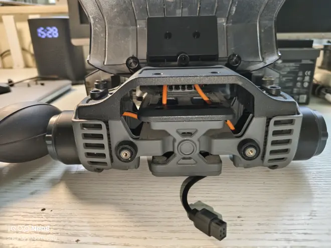 如图,工程师们将云台卸下后在s1后部的总控模块上将云台模块的排线拔出 (红色虚线处)