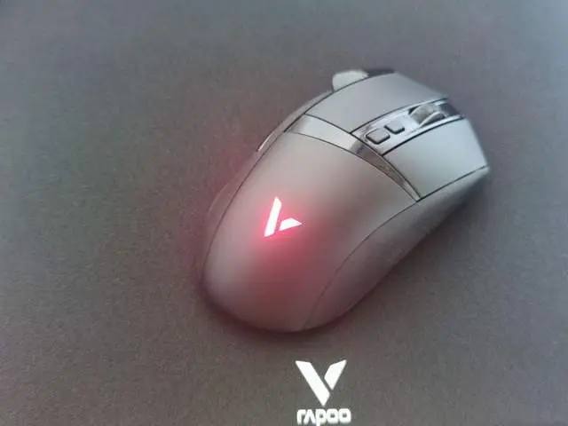 雷柏VT350S鼠标后壳处为品牌logo,带有5种灯效的品牌背光灯,可通过驱动自定义调节约1680万色彩,还可以通过驱动调节鼠标模式和不同灯光模式,还可以调节不同的回报率。