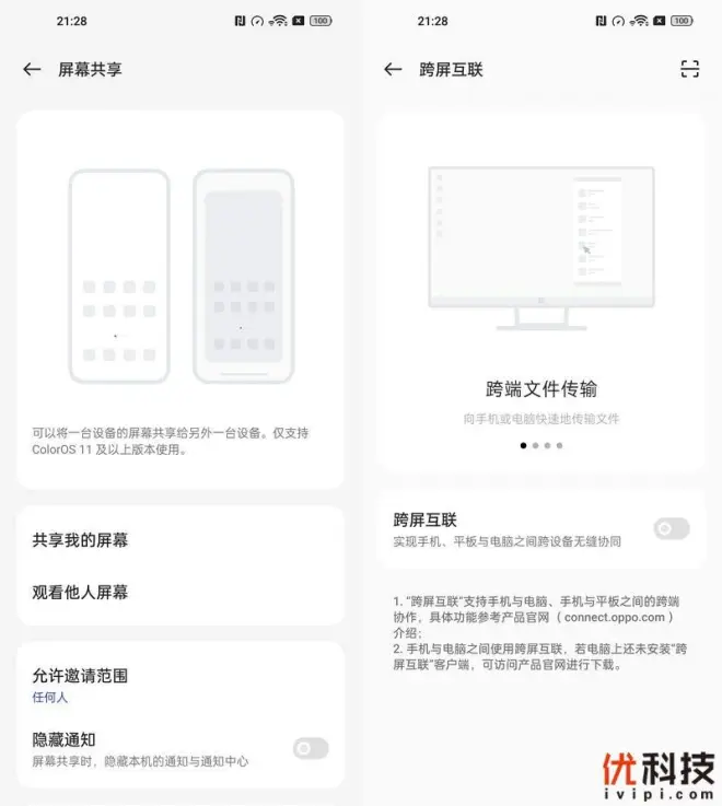 而其他应用互联方面,还支持屏幕共享以及跨屏互联操作,用户可以将本机屏幕共享给其他设备进行观看,而跨屏互联功能则可以实现手机、平板与电脑之间的无缝协同操作,便于办公的需求。