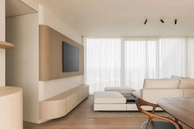 采用了不同的石材与木材以简约的色调创造奢华的平静和简单的温暖
