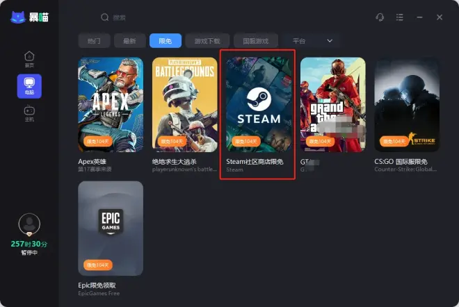 这个问题大家只需要下载使用暴喵加速器加速steam,重新打开steam即可解决。暴喵现在是免费加速steam的,如果想要加速游戏,暴喵加速器客户端点击我的卡券,卡券兑换,输入【加速口令】4个字即可获得加速时长使用。