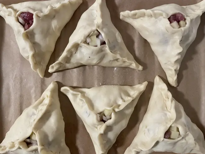 B站上有一位分享塔塔尔族的美食up的一则制作三角肉包的视频,非常适合借鉴!