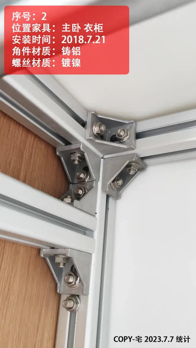 1.卧室等偏干燥位置 ,用常规角件+镀镍螺丝即可胜任;