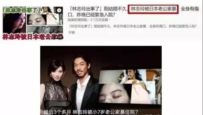 那么回到上边的问题,为什么林志玲突然说要退出娱乐圈呢?依儒爷来看,除了人气的下滑之外,还可能和之前网传的家暴等恶评有关。前不久,台媒突然爆料称林志玲婚后并不幸福,还频繁遭到老公的家暴。更是被传出因为被黑泽良平毒打,导致身体里的假体都被打出来了。林志玲不得不回台湾做假体修复,而台媒还附上一张视频截图的照片,一时间引起网友议论纷纷。