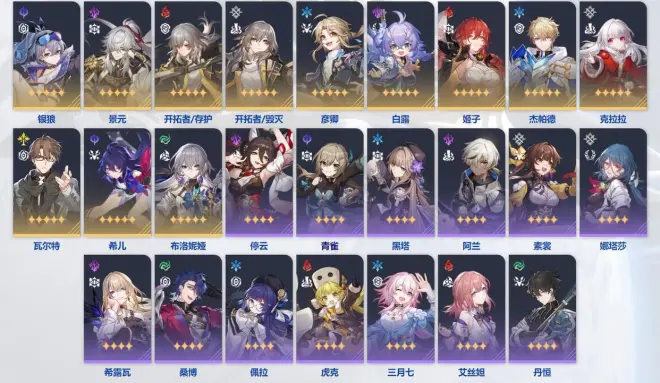 原神中有排行榜单,在崩铁中自然也有,不过崩铁的榜单主要围绕的是角色泛用性和需求去选择,也是根据每个人的队伍搭配情况去选取的,一队有一队的玩法,二队有二队的玩法,是比较灵活的一个搭配,目前星铁版本的角色见上图。