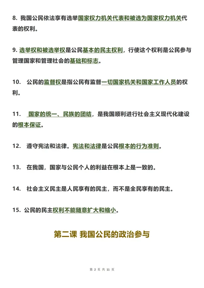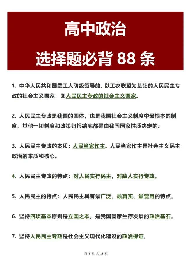 » 高一政治,掌握这必背88条知识点!选择题就稳了!