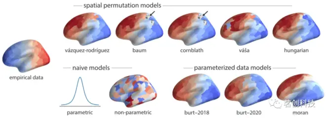 空间排列模型的主要优点是保留了经验数据的距离-依赖关系。但是,含缺失值的区域可能会在地形图旋转后产生问题,并且已经开发了各种启发式方法来解决此问题,例如丢弃缺失数据,然后基于最近的可用区域对缺失值区域进行插值。另一个限制是,基于排列的方法不能应用于皮层下结构,这些结构通常不能充分建模为二维球面。参数化模型不受缺失数据的影响,可以等效地应用于皮层和皮层下测量,但不能保证经验距离依赖性与原始经验值的精确匹配。因此,涉及不同空间地形图的分析可能会受到模型拟合变化的影响。对这些不同皮层分析方法的各种实现进行比较表明,与参数化模型相比,基于排列的模型提供了更保守的显著性估计值和更低的错误率。然而,没有一种方法是完美的,对于强自相关数据的错误率超过40%,这表明有效的推断还需要进一步发展。Markello等人(2021)对不同的零模型进行了扩展研究,其实现工具箱可在https://netneurolab.github.io/neuromaps/上找到。