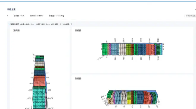 2、3D可视化展示: 通过直观的3D可视化展示,用户能够清楚地观察货物在集装箱内的摆放情况。这有助于更好地理解装柜方案,避免空间浪费,提高装载效率。