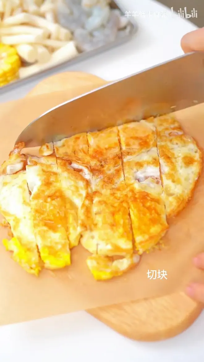 放入玉米、海鲜菇、豆腐、西兰花、虾仁