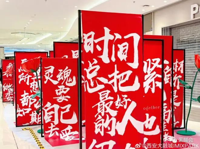巨型红色许愿花悄然盛放,构筑属于东方人的浪漫怀想,在表达爱意的节日里,愿爱如蔷薇,带人们抵达心中的浪漫与自由。