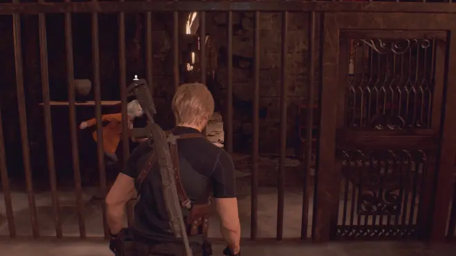 进入地牢内,艾什莉从对面帮助里昂打开铁门。