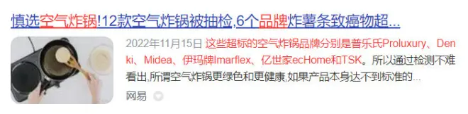 劣质的空气炸锅不仅含有有害材质,散热问题等许多隐患,其使用年限也不高,然而这些商家就会隐瞒这些危害和缺点,将自己的产品包装成完全无害的空气炸锅。
