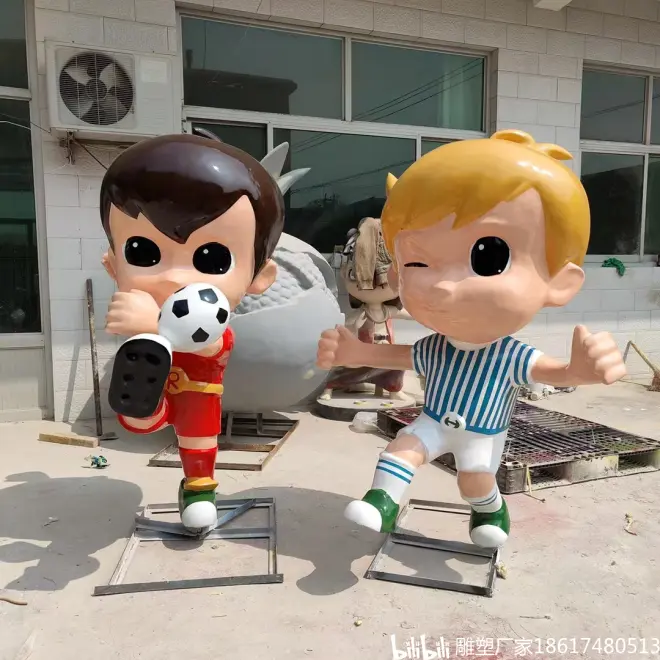 卡通踢足球雕塑是卡通运动人物雕塑中的一种,各种运动题材的雕塑都可以进行卡通化的创作,唐韵雕塑曾为客户制作多款踢足球人物雕塑,有具象的、卡通的,也有剪影人物,可以制作玻璃钢材质和不锈钢材质,我们现在有踢足球人物雕塑,踢足球雕塑供应,需要的朋友可以联系我们。