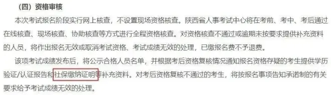 陕西关于经济师考务工作通知中明确:该项考试成绩发布后,将公示合格人员名单,并根据考后资格复核情况通知报名资格存疑的考生提供学历验证/认证报告和社保缴纳证明等补充资料。对考后资格复核不通过的考生,将按报名事项告知承诺制的有关要求给予考试成绩无效的处理。