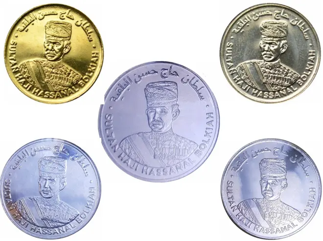 正面: 苏丹 奥马尔 阿里 赛夫丁三世 左侧肖像 背面:民族图案与国徽