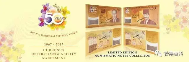 新加坡 因和 文莱 签署两国货币相互流通协议,因此 新加坡 货币与 文莱 货币等值流通。2007年两国曾联合发行纪念两国签署货币相互流通协议40周年塑料纪念钞。两国纪念钞面值均为20元,取20+20=40之意。纪念钞正面由两国自主设计,背面采用两国共同设计图案,这是全球第一套联合发行的纪念钞。