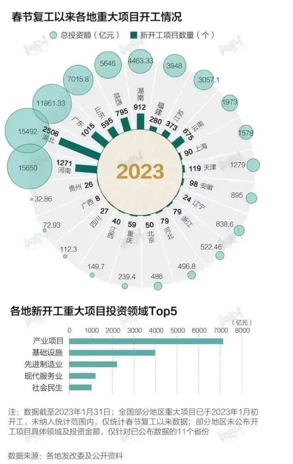 从今年春节复工以来,湖北开工了2506个项目,总投资额达到15492亿元,仅次于河南省。