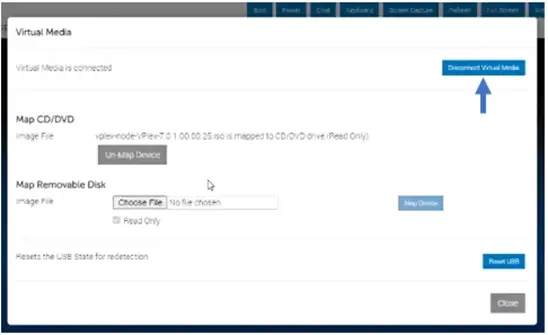 然后选择“Disconnect Virtual Media”删除iso映射设备。