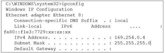 3.等待3到5分钟,直到笔记本电脑分配的IP地址为169.254.0.4