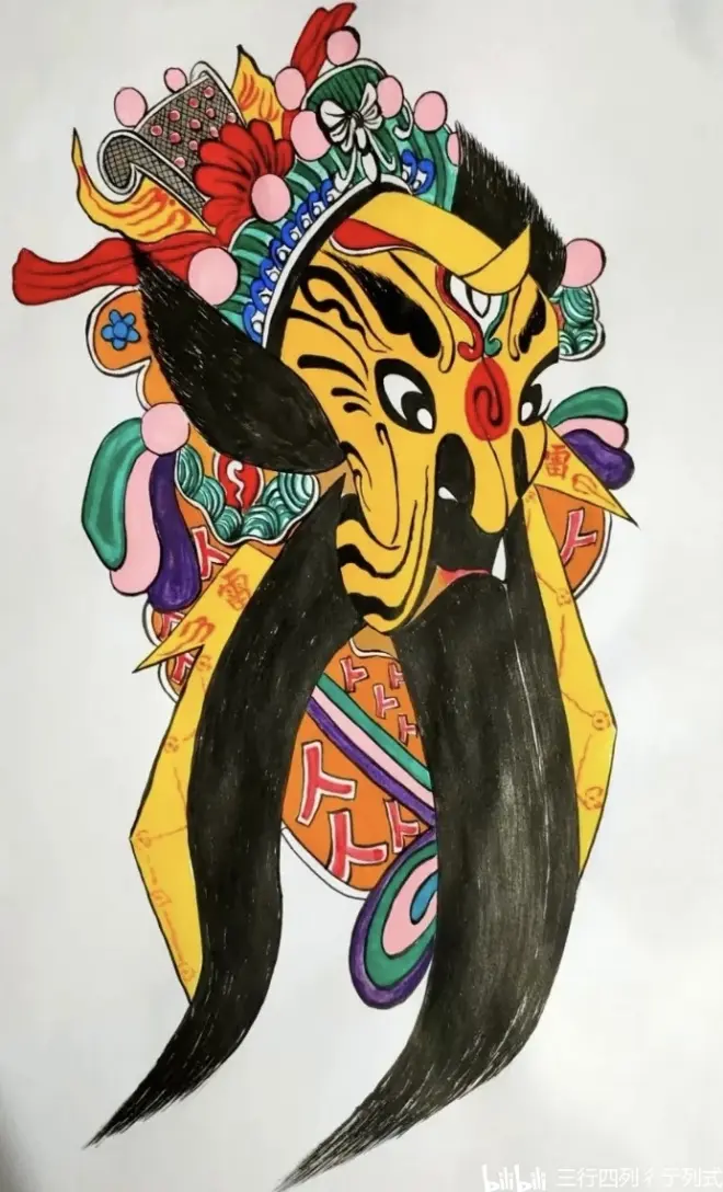 怒发冲冠盖耳毛,秋风摆动亮杀袍。 火龙洞中学大道,火龙圣母把咱教。 跨下乘骑墨麒麟,倒托雌雄鞭两条。 仰面不敢长嘘气,足下红云万丈高。