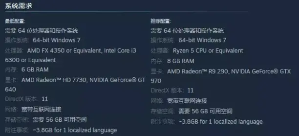 根据Steam页面公布的APEX英雄配置要求,该作最低配置要求为 i3-6300 + GTX 640 3GB,推荐配置要求为 i5-3570K + GTX 970 Ti。不满足配置的情况下也会出现游戏卡顿,掉线等问题。不满足游戏最低配置要求的需要玩家们进行升级适配或者更换。