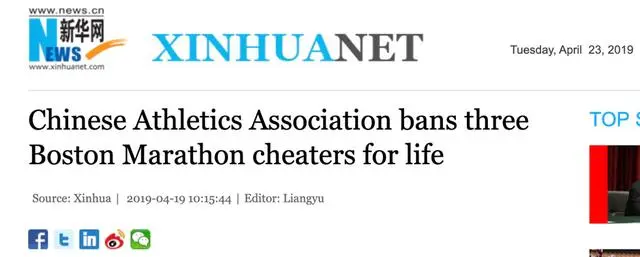 当然,这里不是说中国不存在作弊的问题。3名选手在波士顿马拉松上作弊,是一件非常可耻的事情,而他们也得到了应有的惩罚。