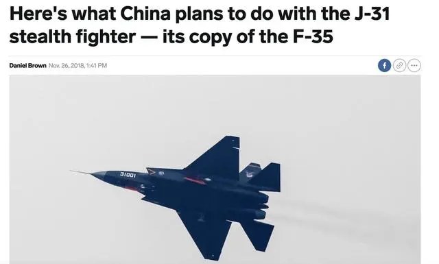 《Business Insider》:中国的J31战斗机抄袭美国的F35