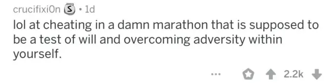 “太好笑了,马拉松是为了考验一个人的决心和克服困难的能力,作弊的话一点意义都没有了好吗?”