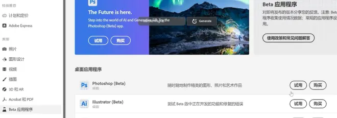 进入该软件之后我们在左下方找到这个beta应用程序,然后直接点击试用就可以安装了。