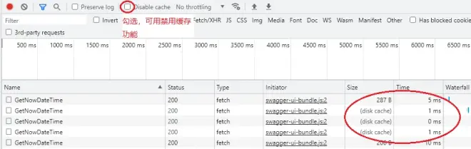 public class HomeController : ControllerBase { [ResponseCache(Duration = 5)]//告诉浏览器可用缓存5秒 [HttpGet("GetNowDateTime")] public string GetNowDateTime() { return DateTime.Now.ToString(); } }