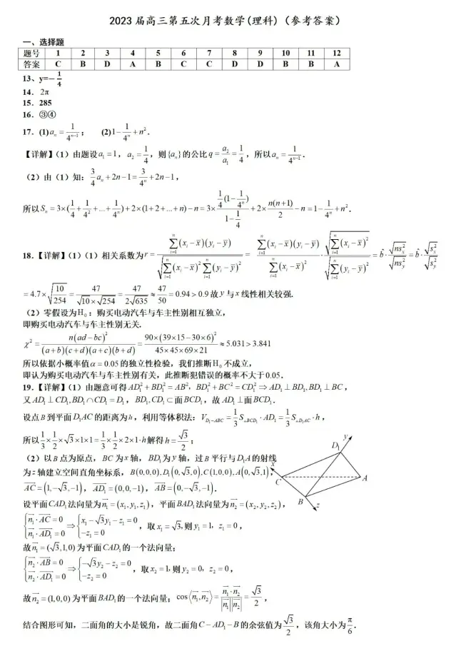» 宁夏银川名校2022-2023学年高三下学期第五次月考理科数学试题(扫描版含答案)