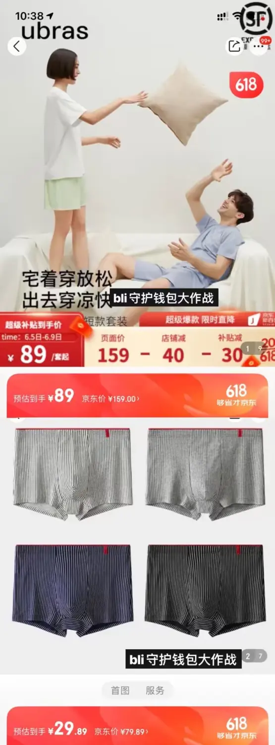 ubras 纯棉套头短袖+短裤 情侣家居服套装【89】6色可选