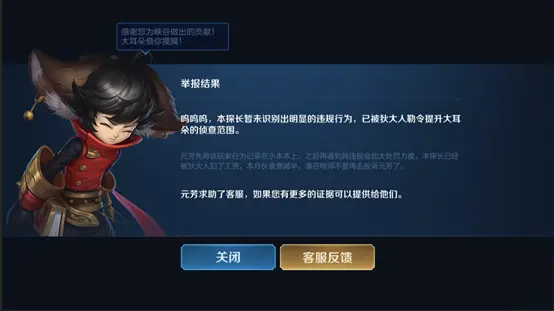 3、我们暂时没有发现确切违规行为审时,元芳(可怜的打工仔)会将情况详细记录在小本本上,召唤师可以继续寻求客服帮助。