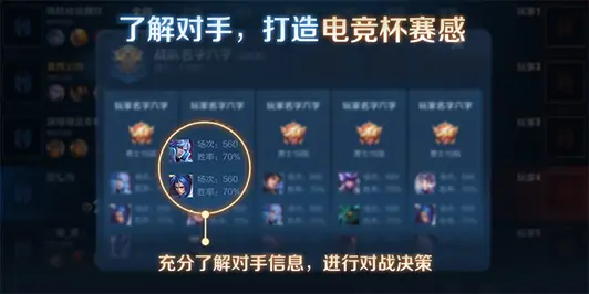 在王者杯的BP房间可以查看对手五名玩家的英雄资料,充分了解对手信息,进行对战决策!