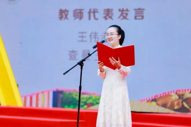 南校区教师代表王伟带来嘱托,他告诉学生们要独立思考,低头看路,砥砺前行。祝福学生们在高考中取得函数的最大值,相信学生们的人生和未来一定会像底数大于1的指数函数,蒸蒸日上。